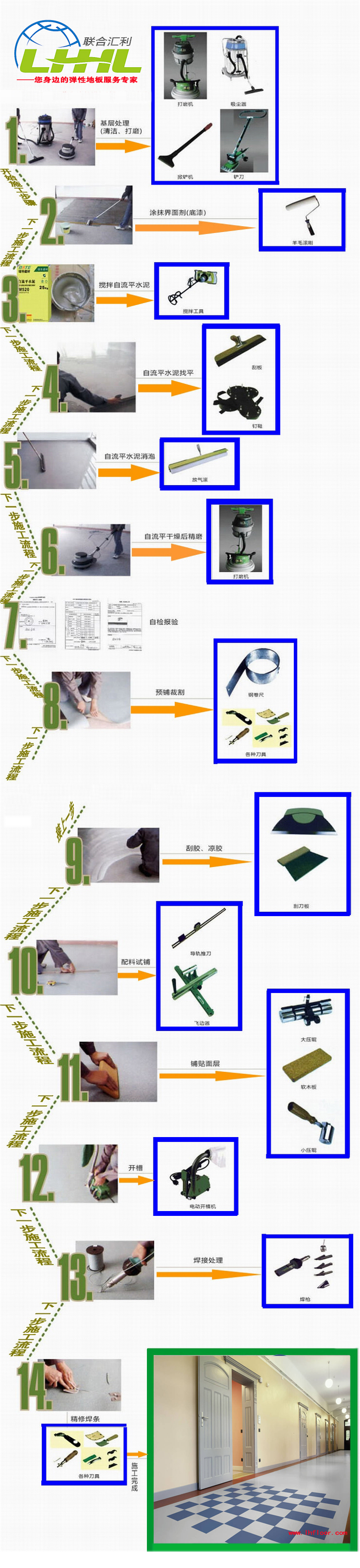 佛山市聯(lián)合匯利地板有限公司專注于人類高級彈性防滑地面系統(tǒng)產(chǎn)品的設計/開發(fā)/生產(chǎn)/銷售/安裝/和服務,產(chǎn)品主要應用在體育系統(tǒng)/醫(yī)療系統(tǒng)/教育系統(tǒng)/商業(yè)系統(tǒng)/辦公系統(tǒng)/工業(yè)系統(tǒng)/交通系統(tǒng)/家居系統(tǒng)等地面,目前在廣東、江蘇、河北有大型生產(chǎn)基地和配套物流倉庫,公司引進韓國設計師設計專業(yè)展廳,分為地板產(chǎn)品展示區(qū)/地板配件展示區(qū)/地板施工輔料展示區(qū)/地板施工工具展示區(qū),是目前華南地區(qū)甚至國內(nèi)罕見的大型實體彈性地板服務公司,是名符其實的彈性地板4S店,提供的產(chǎn)品款式近千款,客戶面積超過一定數(shù)量的話,可以根據(jù)客戶要求定制任何花色或者圖案,幾乎滿足您的任何場合設計或者效果要求,為了保證工程質(zhì)量,花巨資引進全套德國進口彈性地板施工工具,250人強大施工隊伍全國上門施工為您服務,專門承接大型PVC地板工程項目。以塑造一流品質(zhì),追求客戶滿意為質(zhì)量方針和目標,我們正努力打造華南地區(qū)甚至全國最專業(yè)彈性地板大型實體公司.熱烈歡迎全國各地客戶上門考察洽談指導。