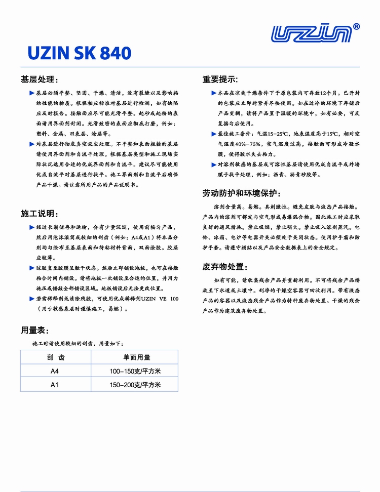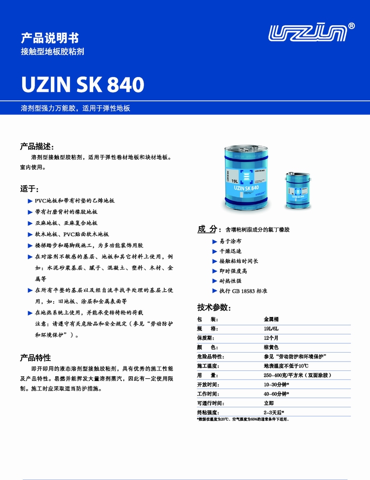 優(yōu)成SK840接觸型地板膠粘劑