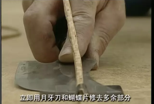 8、 焊接完成后,必須分兩次鏟平焊線。第一次墊上“蝴蝶片”,趁熱鏟第一刀,幾個小時以后,焊線完全冷卻,第二刀將焊線修平。