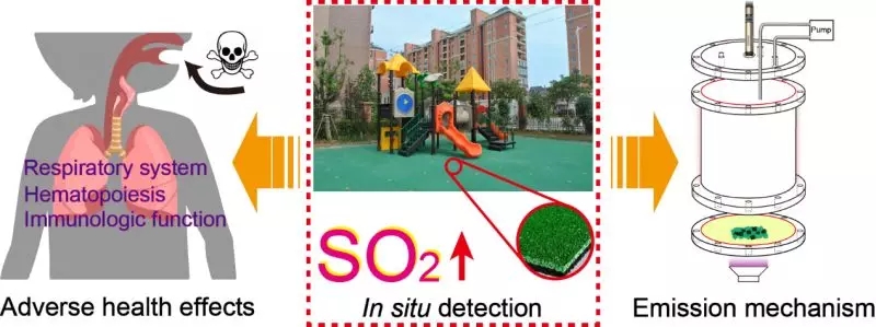 上海交通大學(xué)賈金平教授團隊與學(xué)校分析測試中心一起在對上海某幼兒園的問題跑道現(xiàn)場檢測時,意外發(fā)現(xiàn)在太陽光照射的情況下,近地面可以檢測到低濃度二氧化硫和臭氧。為此,研究團隊搭建了小型煙霧模擬箱,對塑膠跑道在模擬日光照射下的氣體釋放行為進行了一系列的模擬實驗。
